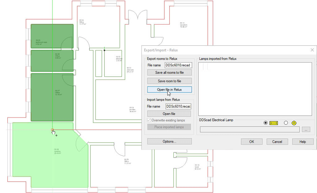 Jeśli używasz Relux do projektowania oświetlenia, docenisz ulepszony interfejs, dzięki niemu projektowanie jest łatwiejsze i szybsze. Przenieś wiele pomieszczeń jednocześnie z modelu budynku DDScad do Relux dzięki elastycznemu projektowaniu oświetlenia w wersji 19.